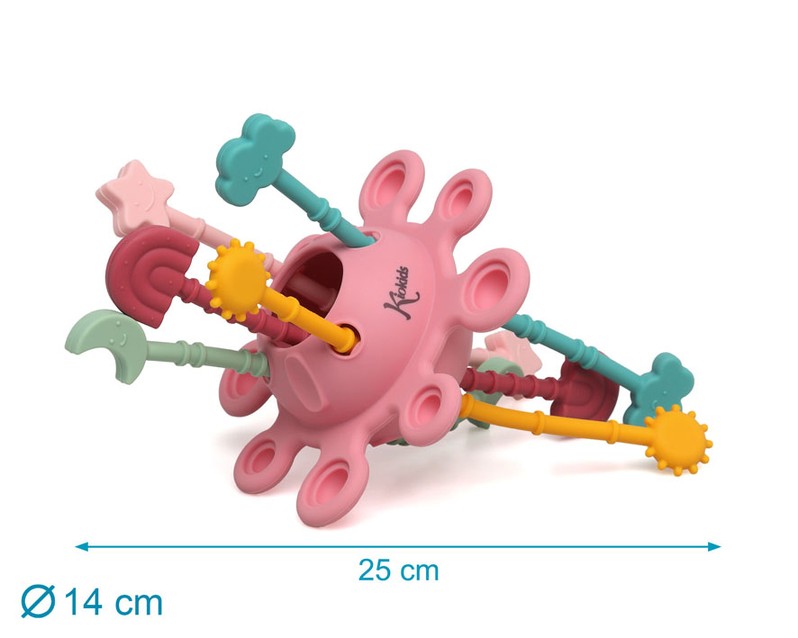Este juguete de estimulación sensorial Kiokids está diseñado para apoyar el desarrollo cognitivo y motor del bebé a través del juego.