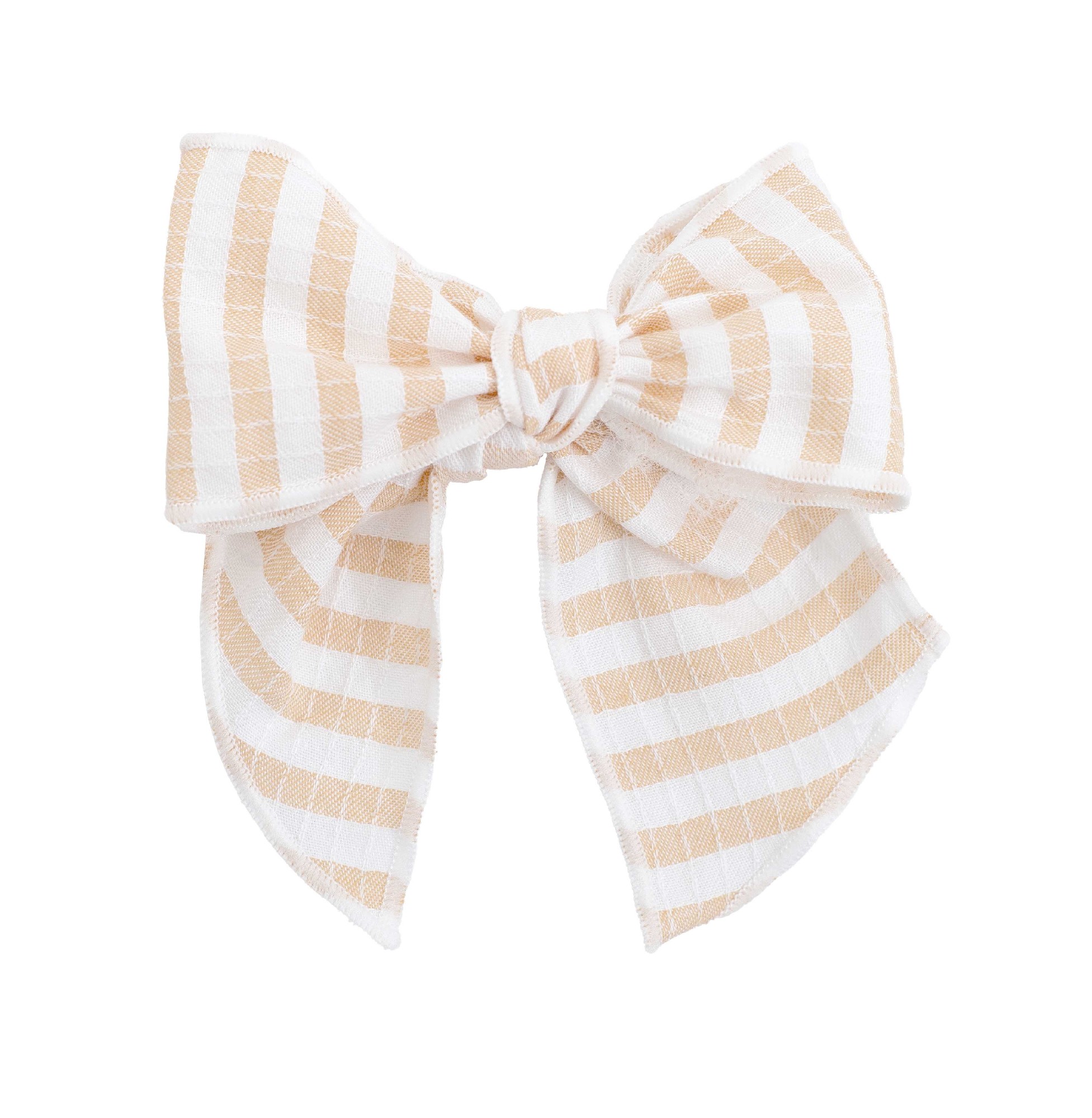 Lazo del pelo para bebe y niña de la colección Delhi de Calamaro. A rayas en blanco y melocotón. Perfecto para combinar con los conjuntos y vestidos de la colección.