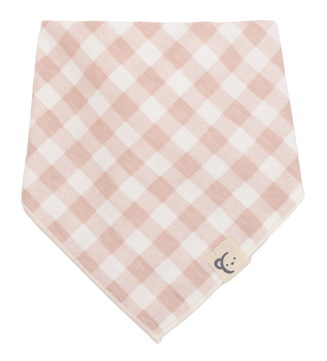 Pack de dos bandanas de algodón 100%. Una de ellas es lisa en color crudo y la otra es a cuadros vichy (mint, celeste o rosa). Perfectas para que tu bebé no se irrite el cuello.